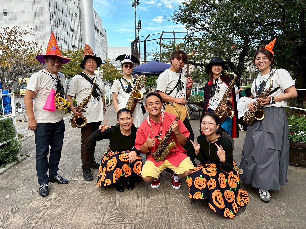 2nd setは、毎年すみジャズに招聘されているアーティスト「Ricky with FSP」のリーダーRickyさんとダンサーのお二方とのコラボ!テーマはハロウィン。SAX30'Sもちょっとだけハロウィン仮装で臨みました。大勢の来場者に一緒に行進してもらいながら盛り上がることができました👍